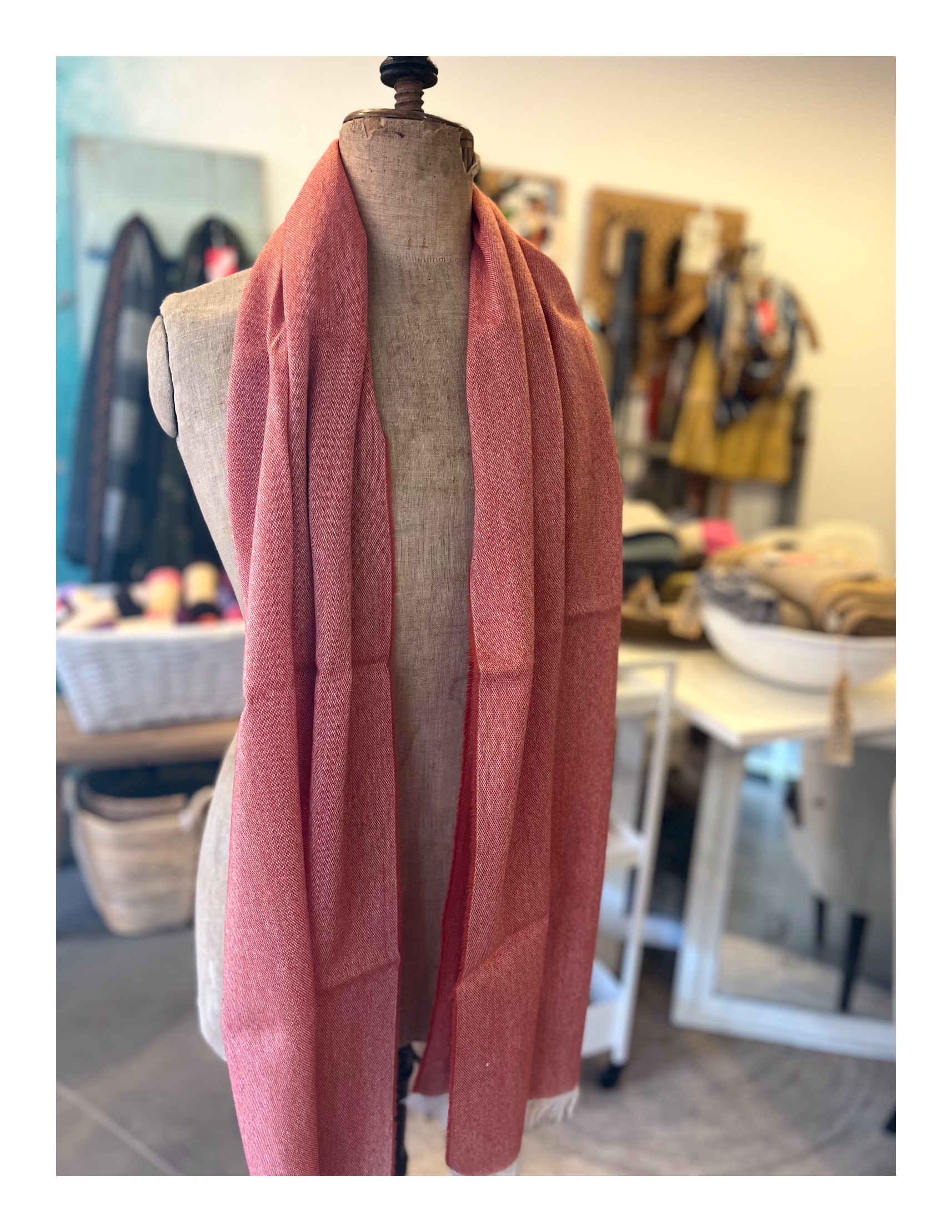 Rode dunne shawl van McNutt van wol en cashmere. Een mooie lichtgewicht kwaliteit shawl uit Ierland die extra zacht is omdat er een beetje cashmere in zit.